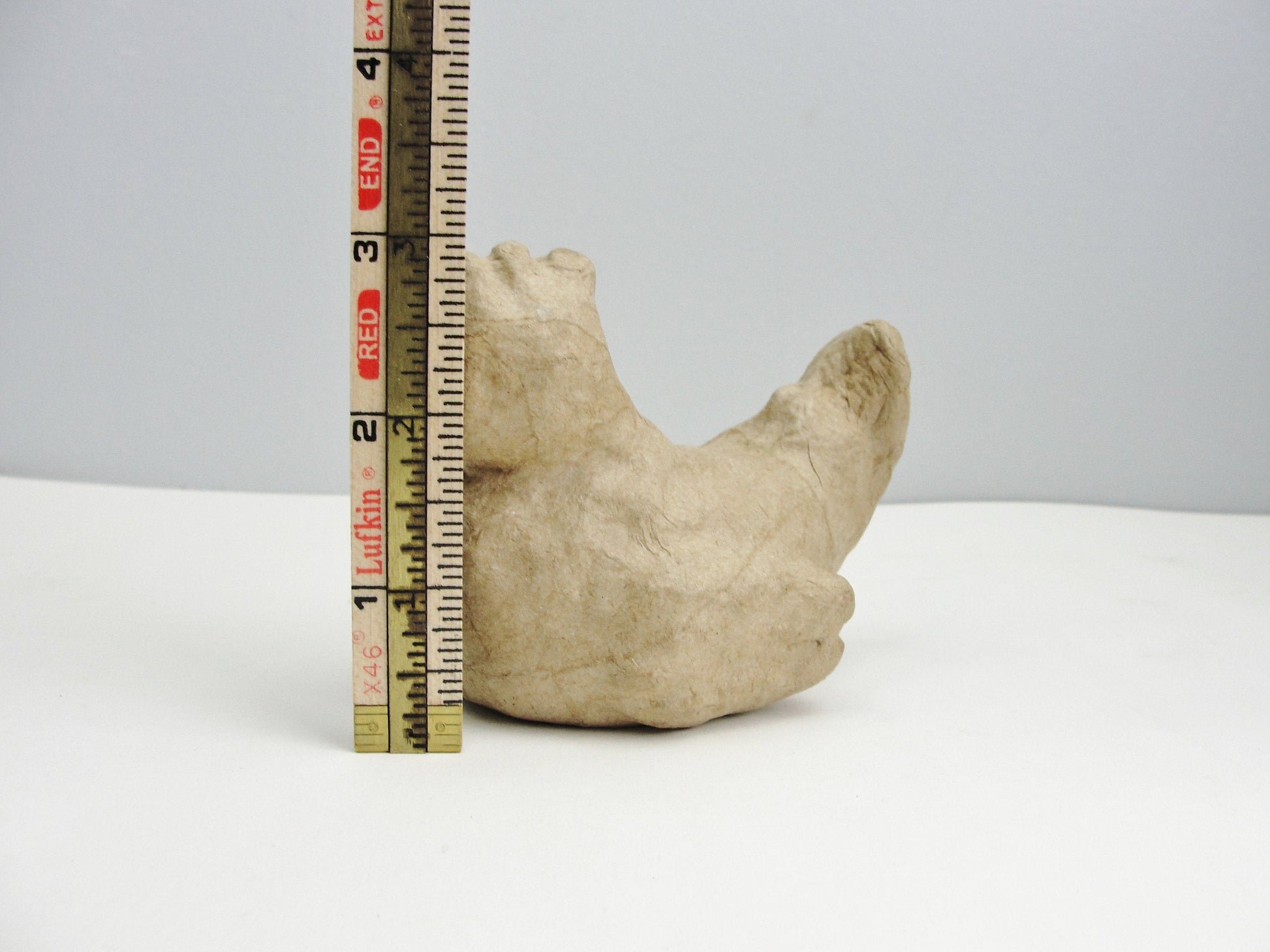 One small paper mache chicken ready for you to paint and decorate. She measures about 4" long and 3" tall. Paint or decoupage her for a great accent piece.