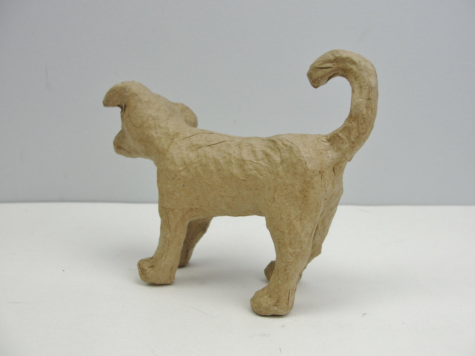 Small Paper mache Dog with curled tail