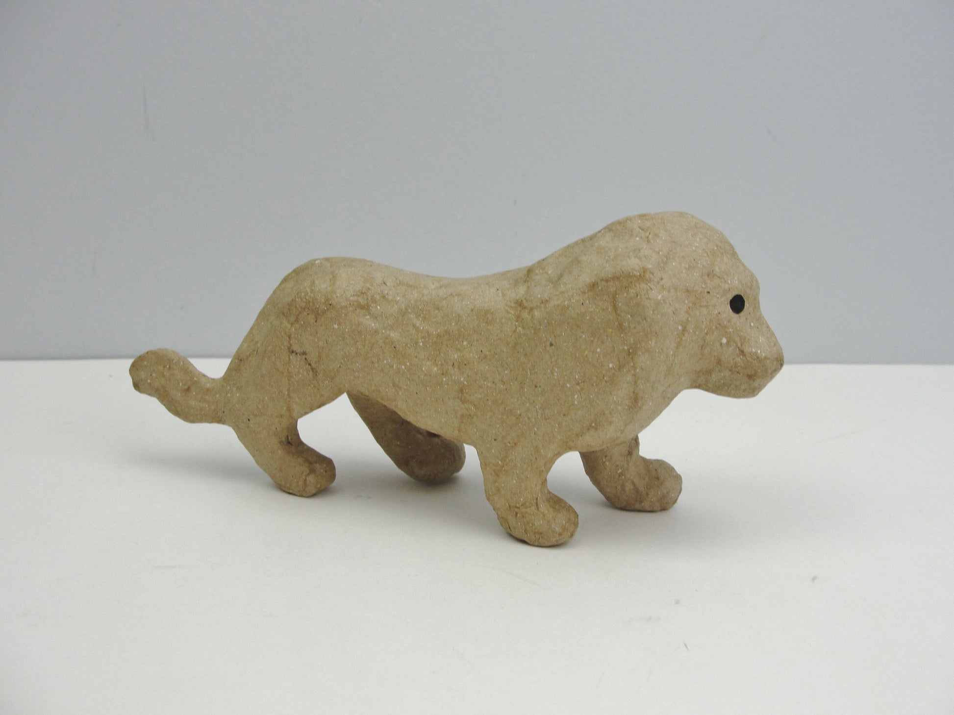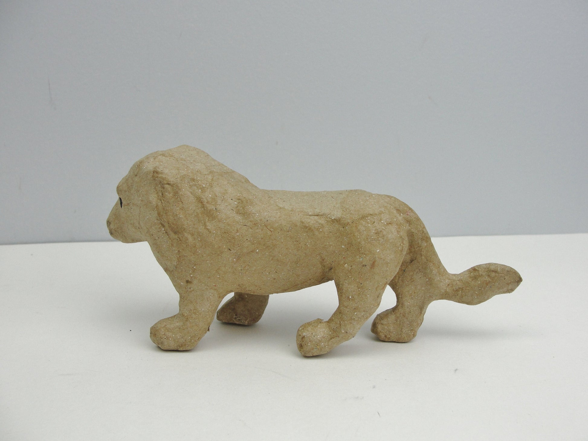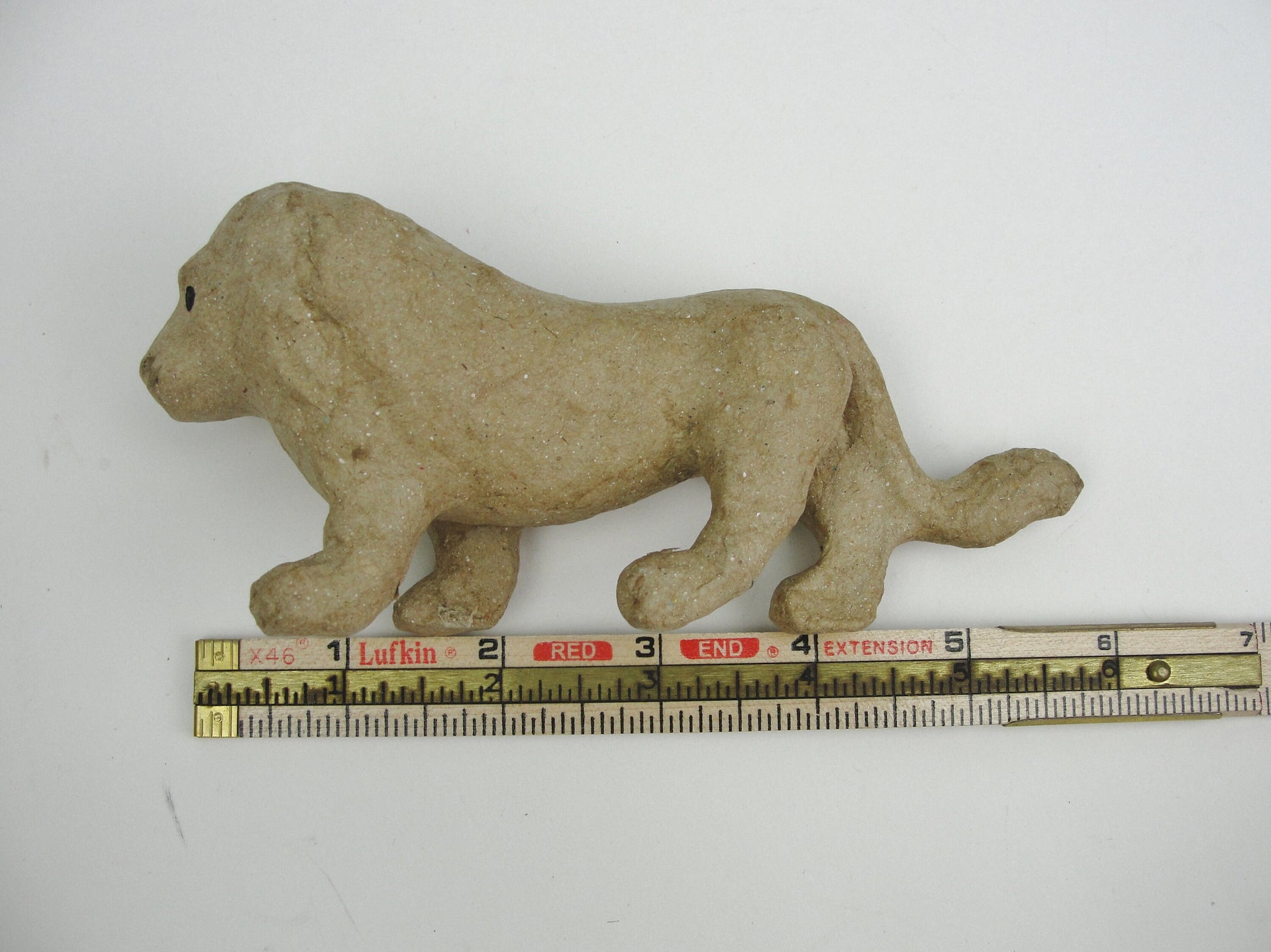 One paper mache lion ready for you to paint and decorate. He is almost 6" long from nose to tail and stands 2 3/4" tall. Paint or decoupage her for a great accent piece. Paper mache items may vary slightly from the photographs.