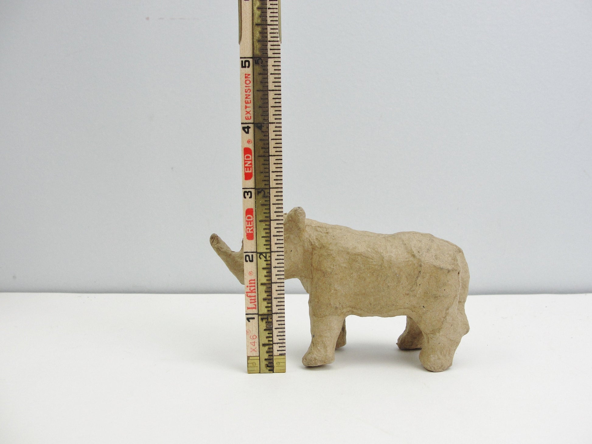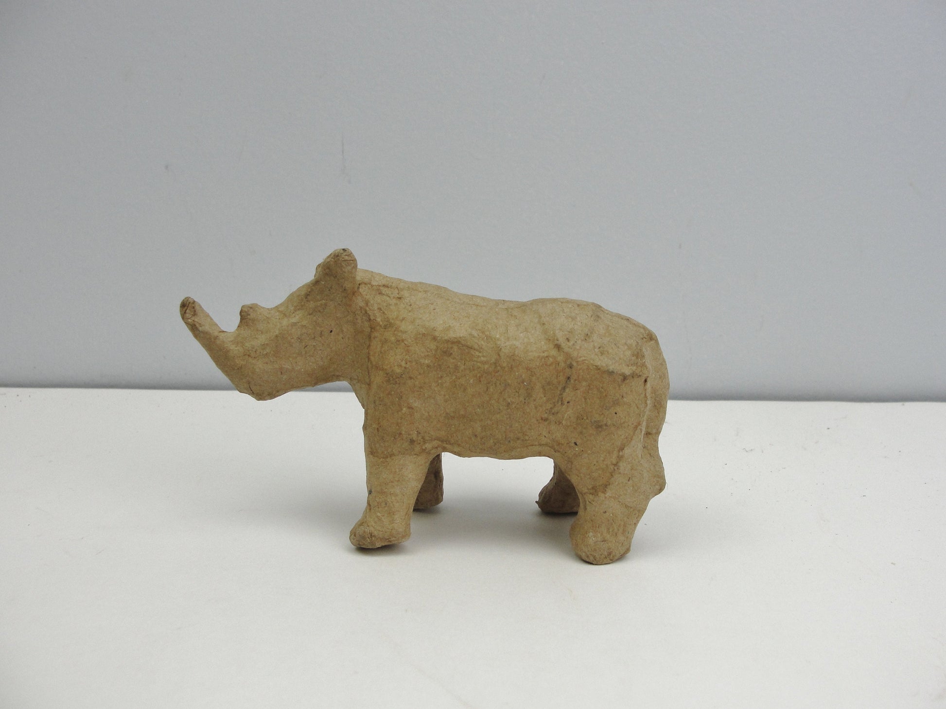 One small paper mache rhinoceros ready for you to paint and decorate. It measures about 4 1/2" long and 2 1/2" tall. Paint or decoupage her for a great accent piece.
