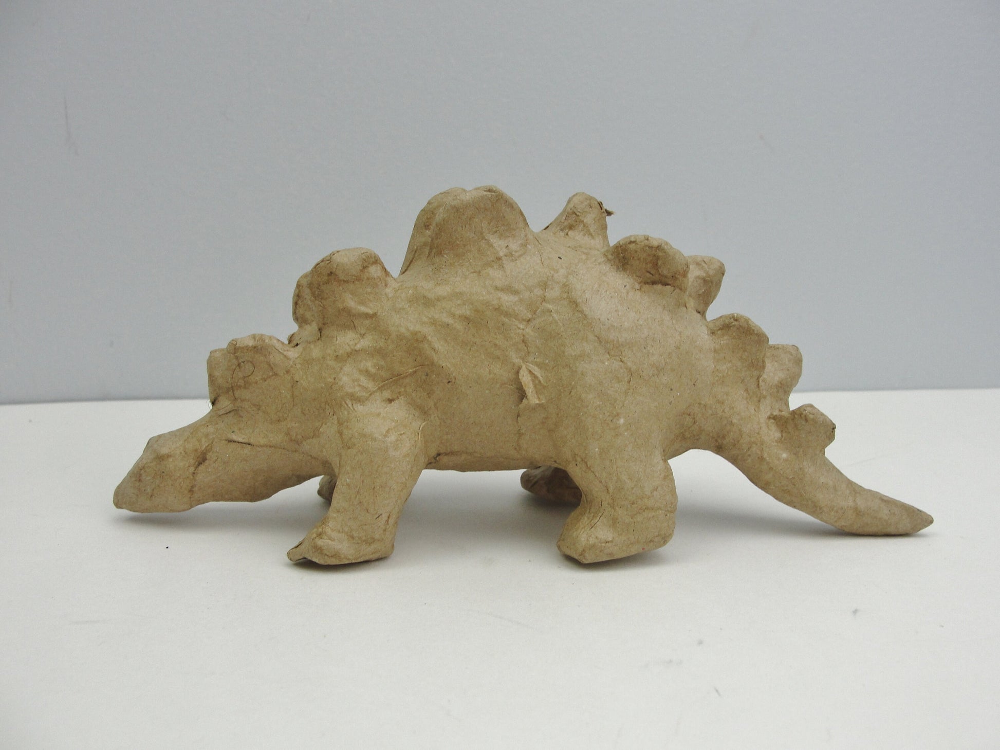One paper mache Stegosaurus ready for you to paint and decorate. He is about 7" long and 2 1/2" tall. Paint or decoupage her for a great accent piece. Paper mache items may vary slightly from the photographs.
